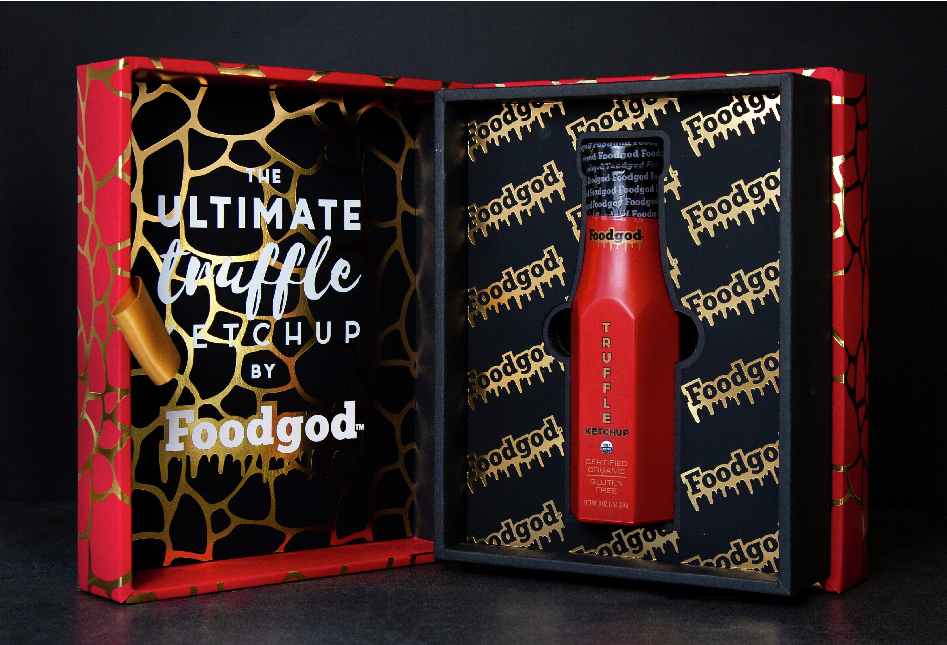 Introducing FOODGOD Truffle Ketchup. The pristine limited Edition Celebrity Launch Promo Box was exclusively designed by QNY Creative in collaboration with Instagram titan @foodgod. Available at FOODGOD.com
